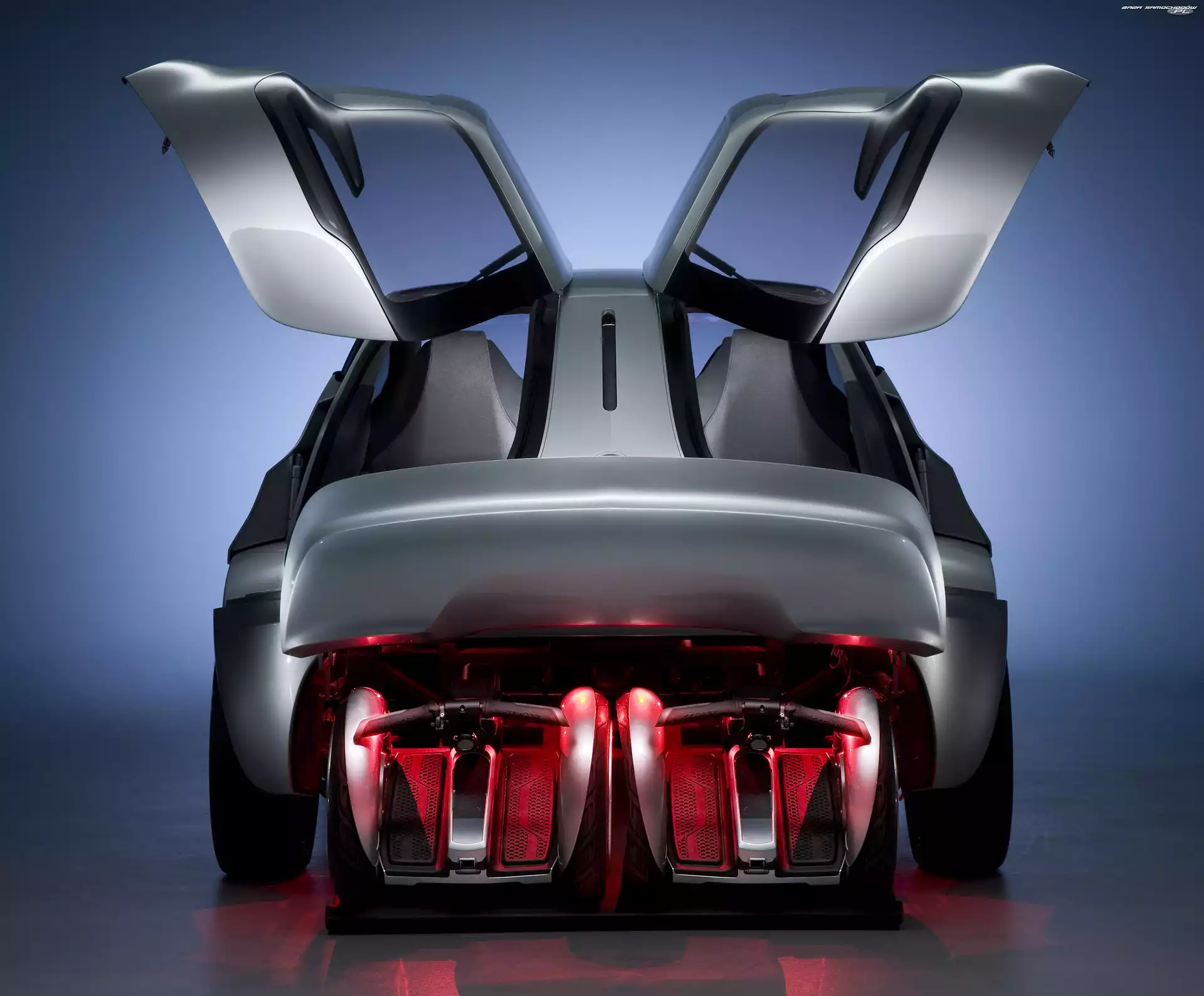 Grill, Audi Quattro, Duży Przód, Mazda Ryuga Elektryczny, Rinspeed Ichange Saturn Sky, Srebrny, Metalik Odbicie, Kształt, Citroen Revolte, Futurystyczny Prototyp, Volkswagen Prototyp, Renault Ondelios Saturn Flextreme Peugeot SR1, Srebrny Saturn Sky, Roadster Audi Avantissimo Ksenonowe, Audi Quattro, Reflektory Prototyp, Volkswagen Kierunkowskaz, Kia Kue, Lusterko