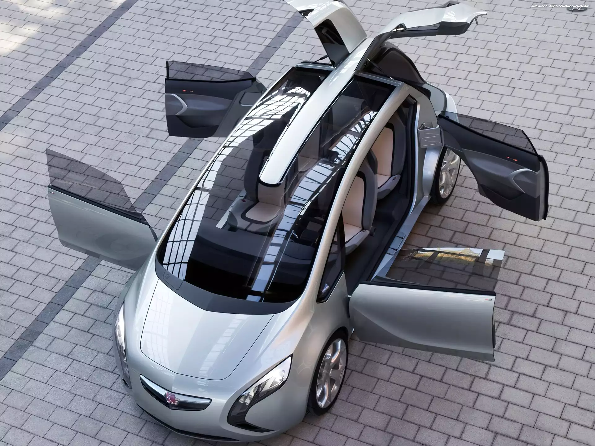 Grill, Audi Quattro, Duży Przód, Mazda Ryuga Elektryczny, Rinspeed Ichange Saturn Sky, Srebrny, Metalik Odbicie, Kształt, Citroen Revolte, Futurystyczny Prototyp, Volkswagen Prototyp, Renault Ondelios Saturn Flextreme Peugeot SR1, Srebrny Saturn Sky, Roadster Audi Avantissimo Ksenonowe, Audi Quattro, Reflektory Prototyp, Volkswagen Kierunkowskaz, Kia Kue, Lusterko