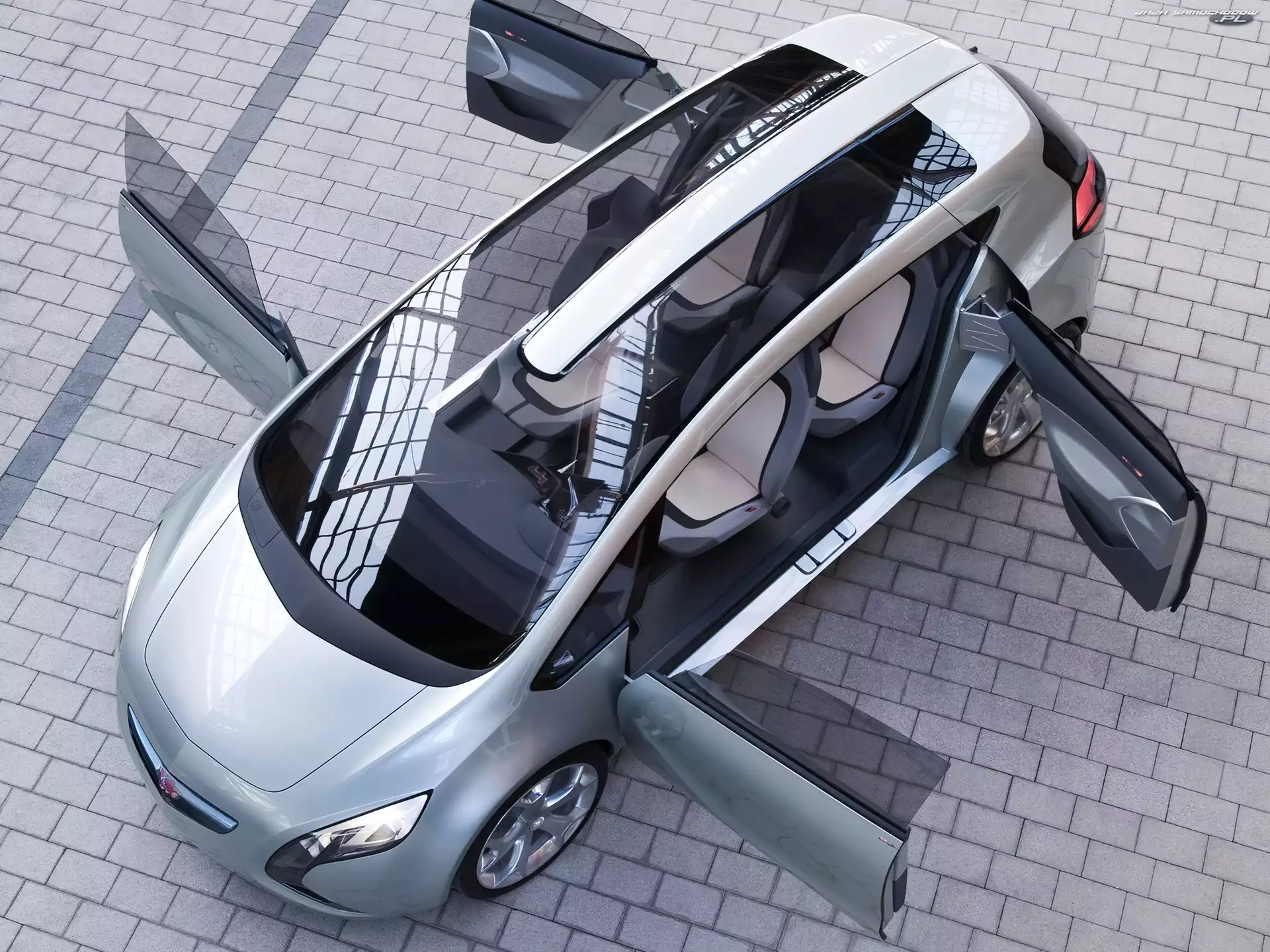 Grill, Audi Quattro, Duży Przód, Mazda Ryuga Elektryczny, Rinspeed Ichange Saturn Sky, Srebrny, Metalik Odbicie, Kształt, Citroen Revolte, Futurystyczny Prototyp, Volkswagen Prototyp, Renault Ondelios Saturn Flextreme Peugeot SR1, Srebrny Saturn Sky, Roadster Audi Avantissimo Ksenonowe, Audi Quattro, Reflektory Prototyp, Volkswagen Kierunkowskaz, Kia Kue, Lusterko